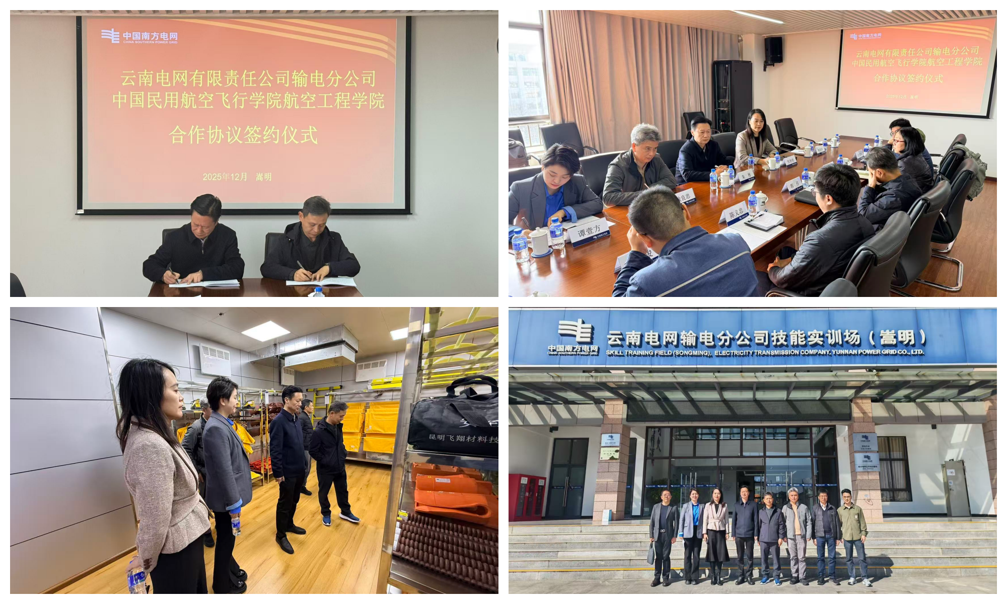 本网讯 申翰林 张艳艳 报道:为进一步深化校企合作,拓宽学生就业渠道,切实推动航空技术与电力行业深度融合,12月15日至16日,航空工程学院党委书记朱彬带队前往云南电网有限责任公司输电分公司(以下简称输电分公司)开展了为期两天的“访企拓岗”活动。来自航空工程学院、航空电子电气学院和航空发动机维修培训中心的骨干教师代表共同参与走访。